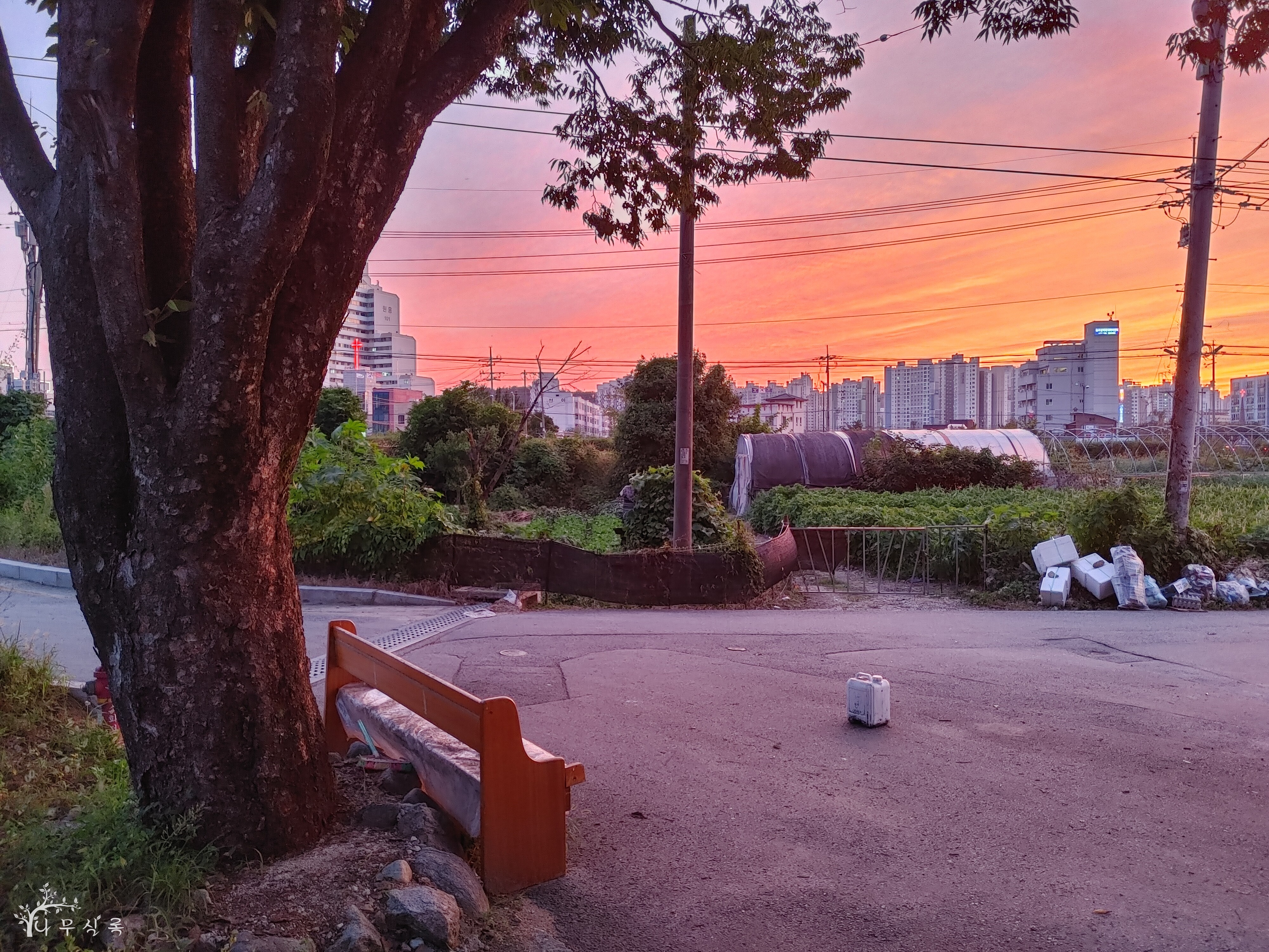 어떤 사람은 그 나무의 형체만 보고도 나무가 무슨 말을 하고 있는지 들린다고 합니다. 저는 아직 수양이 부족한 탓인지 나무의 목소리는 들리지 않고 주위의 풍경을 따라 감성에 젖어 나무의 목소리를 상상하는 데에 그치고 있습니다. 황혼을 바라보고 있는 신월운정의 느티나무는 마치 자신도 황혼에 접어든 것처럼 잎을 갈수록 줄이고 몸도 굽는 듯한 느낌이 듭니다. 혹시 사진만으로도 이 나무가 어떤 말을 하는지 들리는 사람이 있을까요? 원주시 반곡동 신월운정 소재.