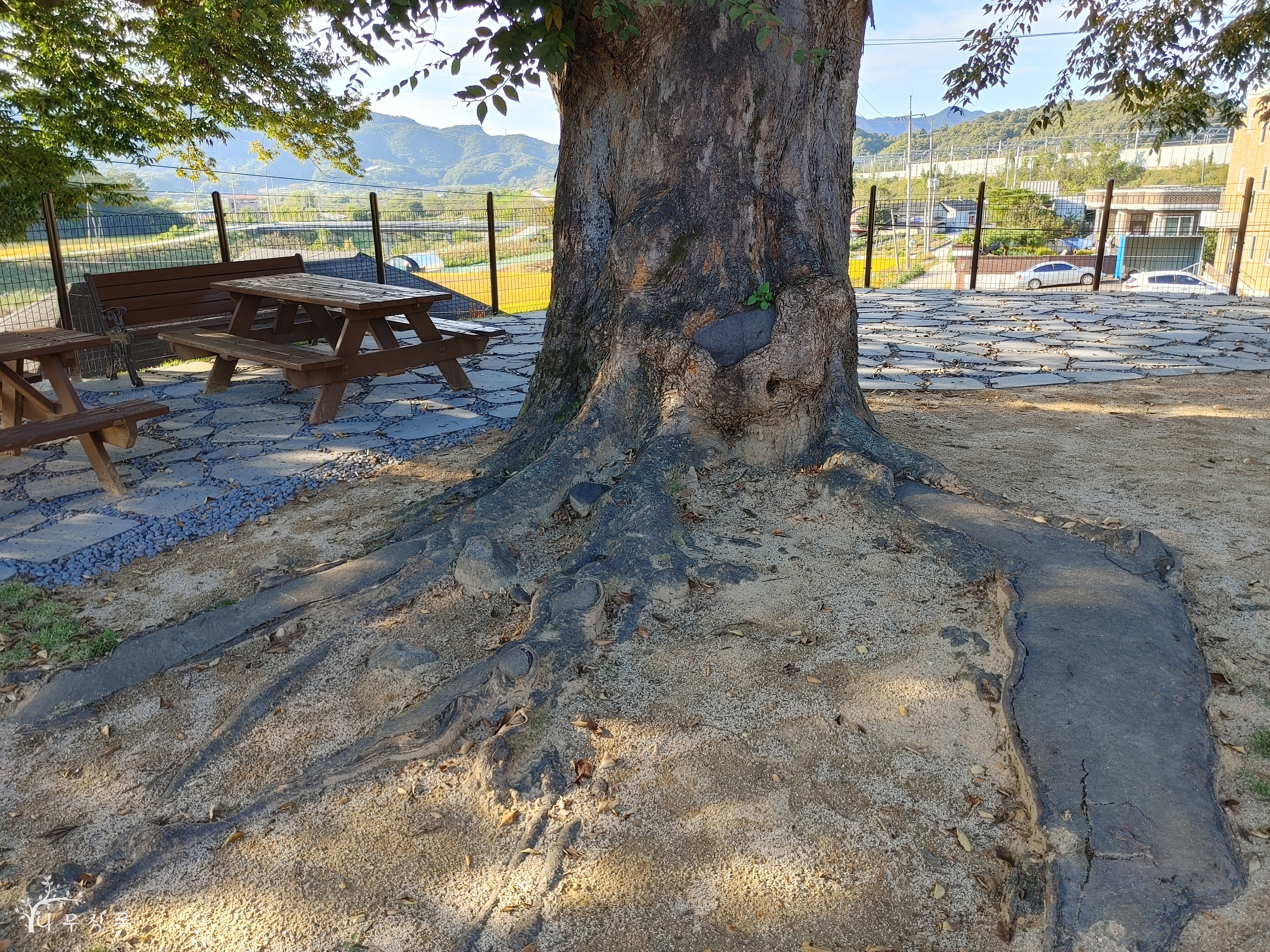 나무 바로 옆까지 콘크리트로 치밀하게 박아두고... 이걸 발주했다고 그대로 따른 업자들도 참...