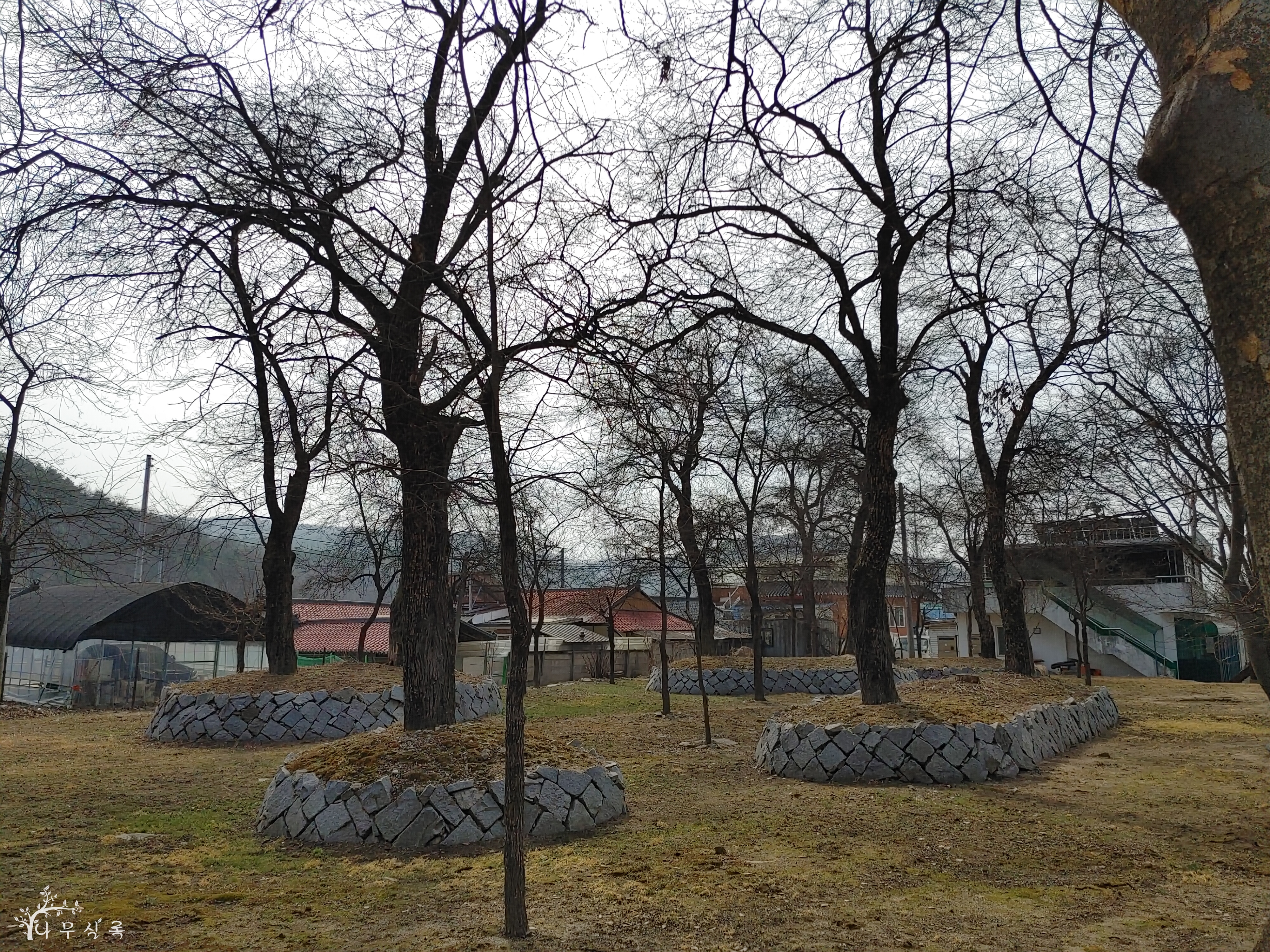 본래 있던 나무는 돌로 터돋움을 해서 위엄을 더하고, 다른 나무들은 이식한 모양입니다